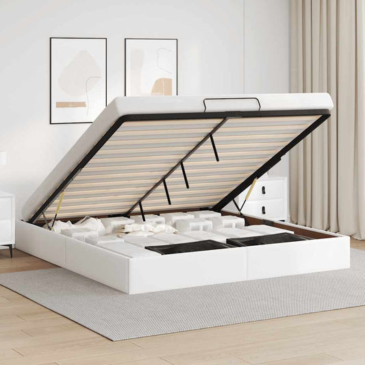 White Ottoman Bed Frame (No mattress) Super King Faux Leather