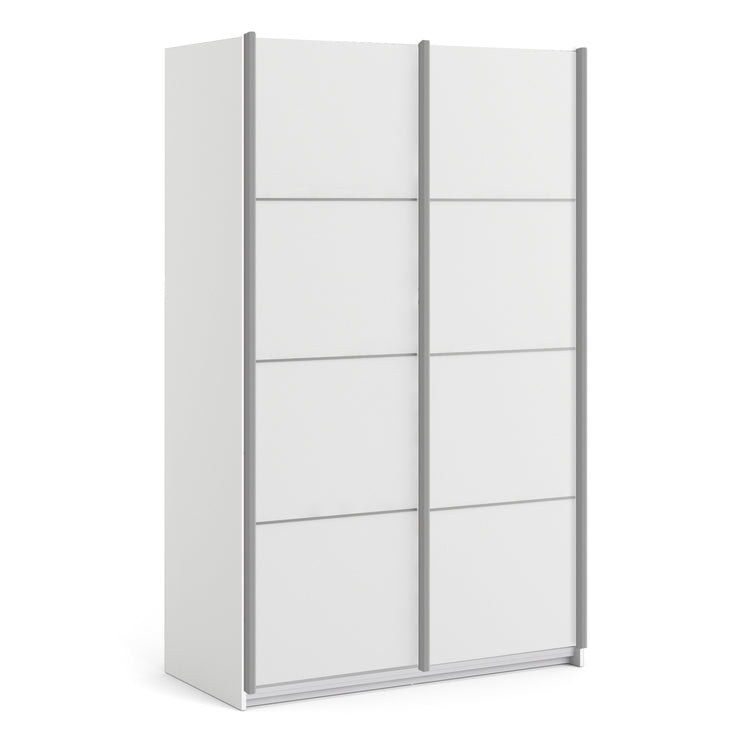 The 'Patsy' Collection. Sliding Wardrobe 180cm in White with White and Mirror Doors with 5 Shelves